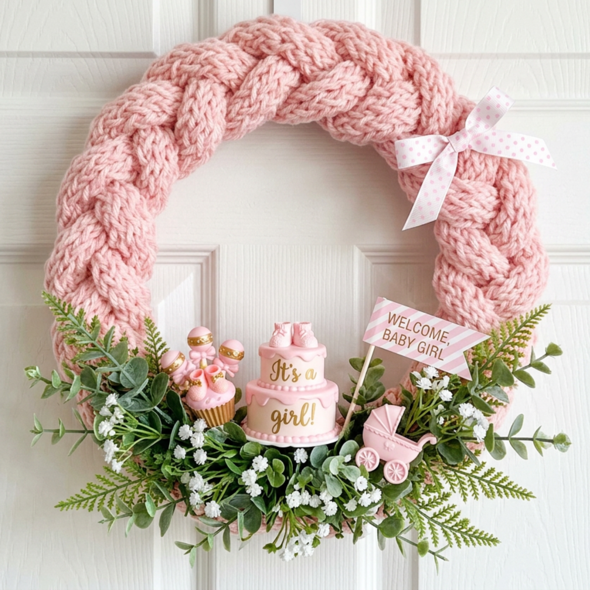 Loom knitted baby announcement it's a girl